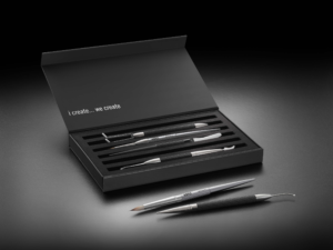 Bugün sizlere, İsviçre’deki Smile Line ile özel olarak geliştirdiğim alet setimi tanıtmaktan büyük mutluluk ve gurur duyuyorum! RSPCT fırçalar, seramikleri şekillendirme ve boyama şeklimi tamamen değiştirdi. Uçları bir saç telinden ince olup, seramiğin nemini ve plastisitesini koruyarak çok küçük seramik parçalarını güvenli ve kesin bir şekilde işlemenizi sağlar. Büyük parçaları ele alırken kontrolü kaybetmeden işlemek için yeterince güçlüdür. RSPCT fırçalar, şimdiye kadar kullandığım en muhteşem fırçalar kesinlikle! Çok uzun ömürlü oldukları garantili ve en yüksek kalitededirler. Setteki diğer tüm aletler, dünyaçapında öğrettiğim teknik için en iyi çalışma konforunu sağlar.Umarım benim kadar keyif alarak keşfeder ve kullanırsınız!”