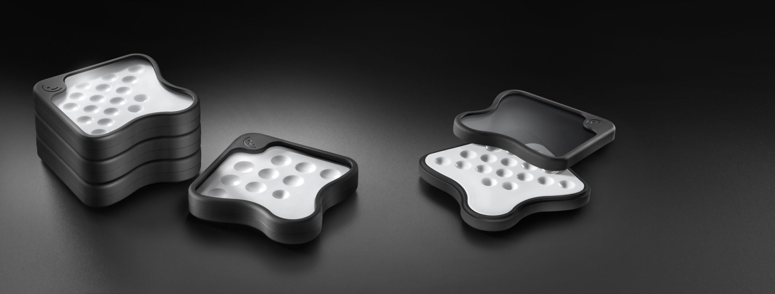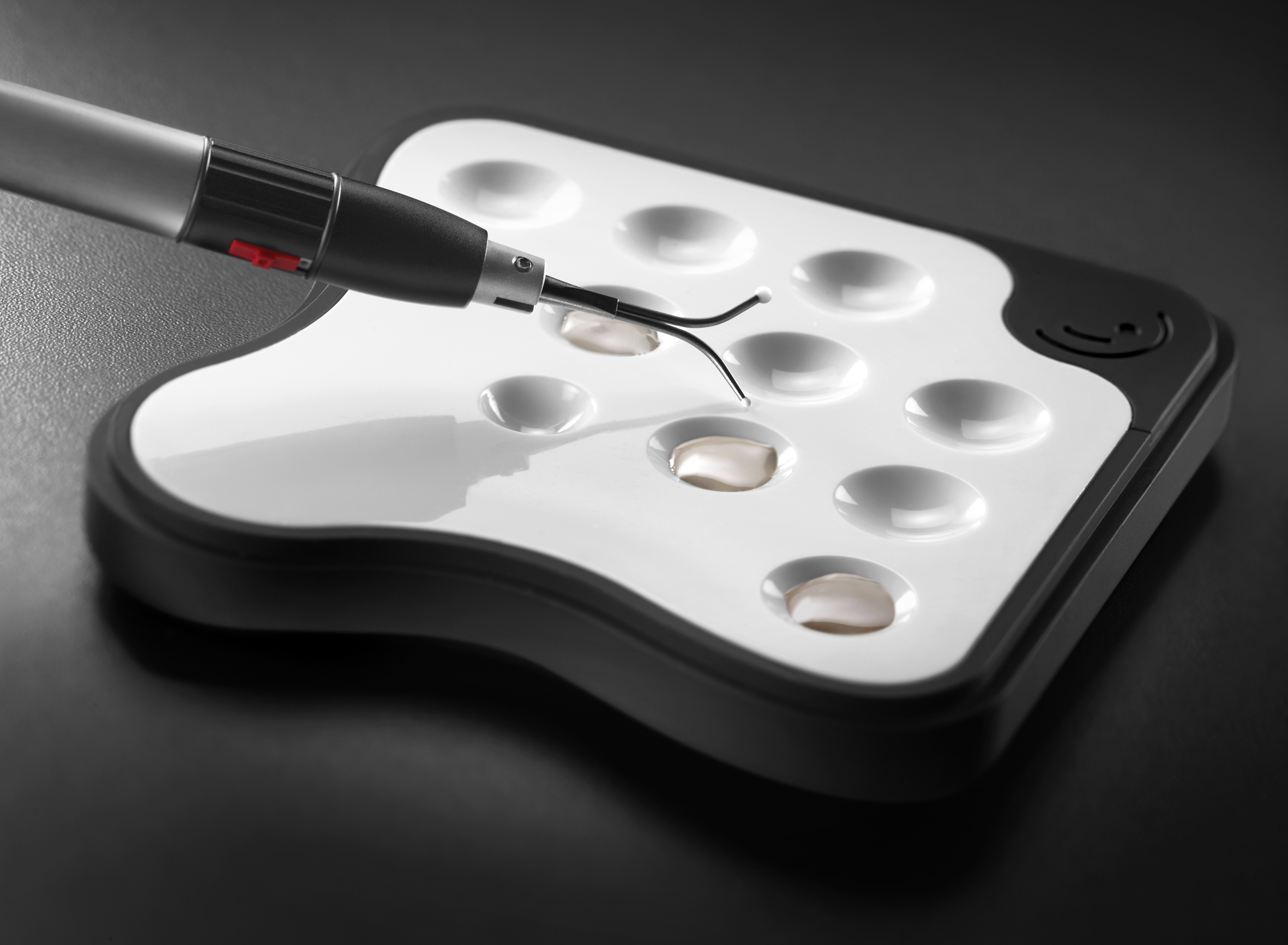 Tinto karıştırma tepsileri, lekeler veya macun-opaklar gibi önceden karıştırılmış ürünleri tozdan korunmuş olarak saklamanıza olanak tanır. Geleneksel bir konseptte olmalarına rağmen (kuru tepsi, güçlendirilmiş polipropilen), Tinto tepsileri benzersiz tasarımları, ergonomisi ve kompaktlıkları (118x118x25mm) ile kendilerini profilleye getirir. Kapak, polikarbonattan yapılmış panoramik şeffaf bir pencere ile donatılmıştır ve tepsinin içeriğini bir bakışta tanımanızı sağlar. Günümüzde aynı diş laboratuvarının birkaç marka porselen kullanması oldukça yaygındır. Tinto’nun birbirinin üzerine yığılabilmesi, tezgah alanından tasarruf etmek için tasarlanmıştır. Ürünün iç kısmındaki referansı işaretlemek için yan tarafta bulunan bir işaretleyici kullanılmıştır bu da işin kolaylaştırılmasını sağlar.